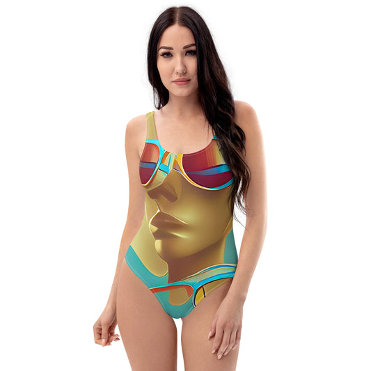 Retro Cool Blue - Womens One-Piece Swimsuit