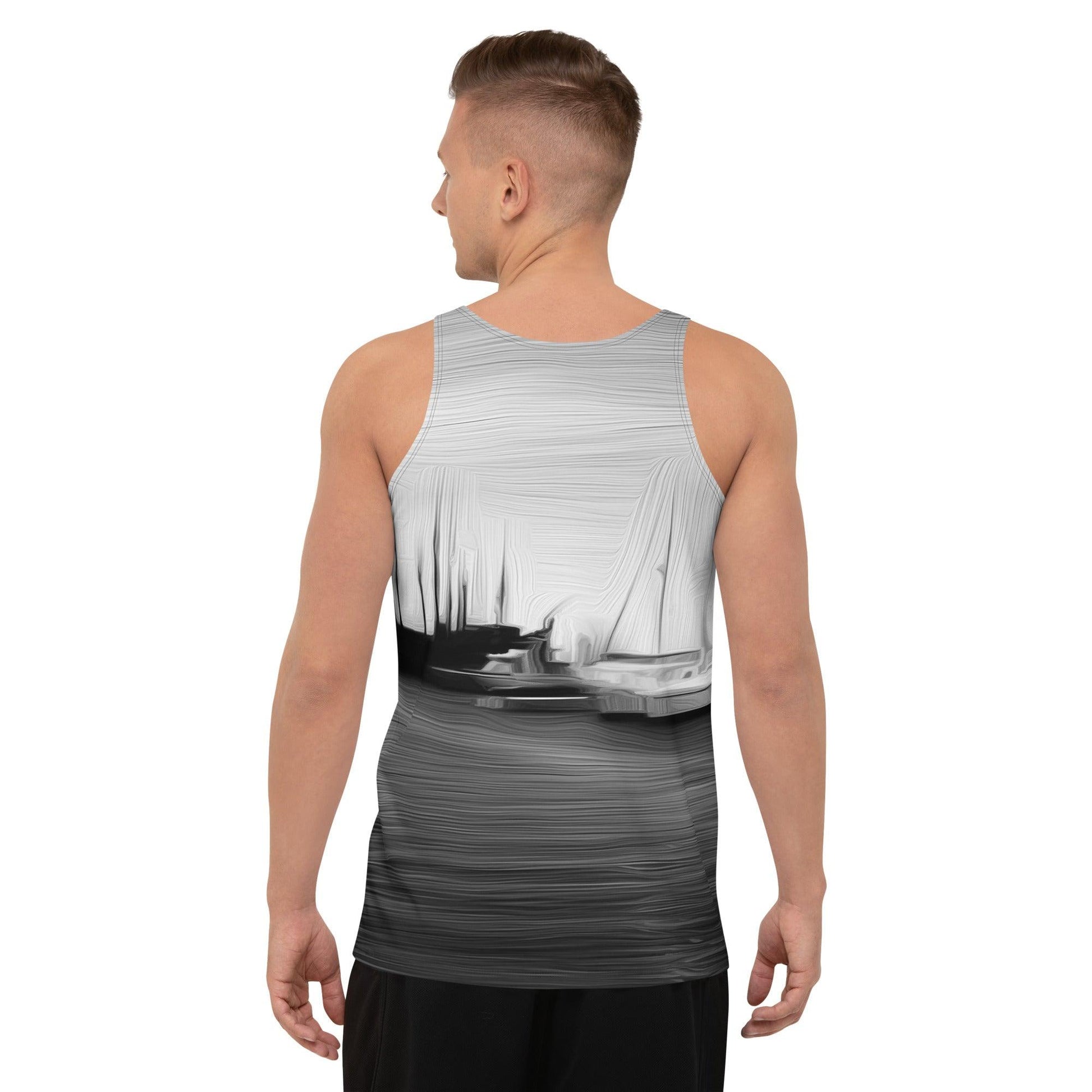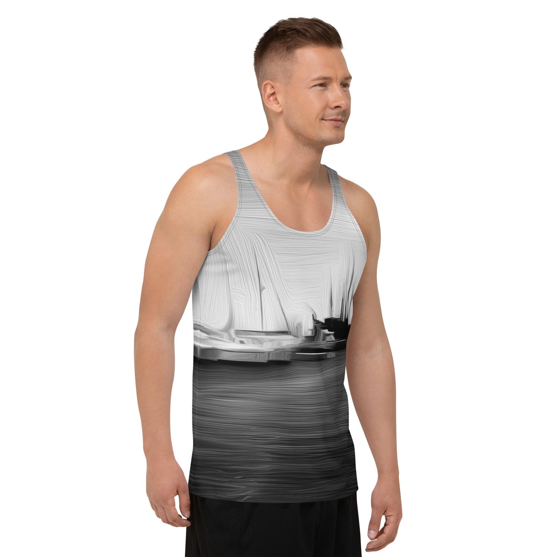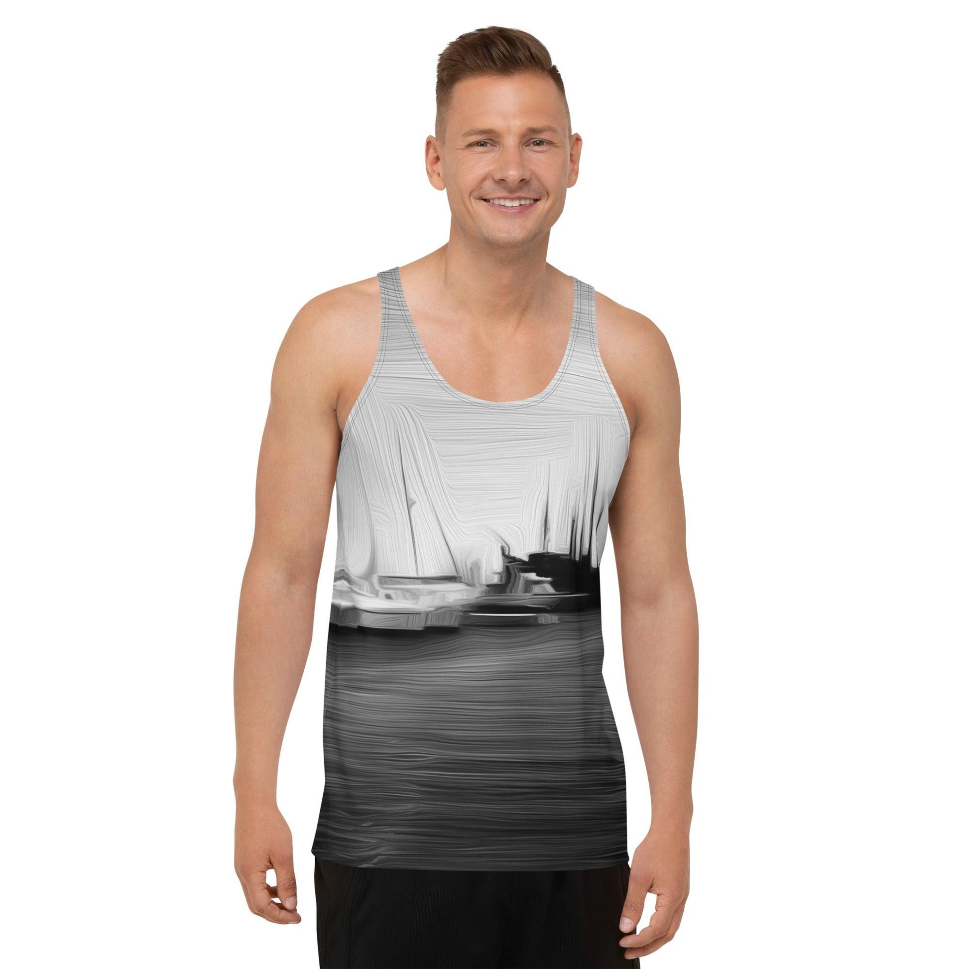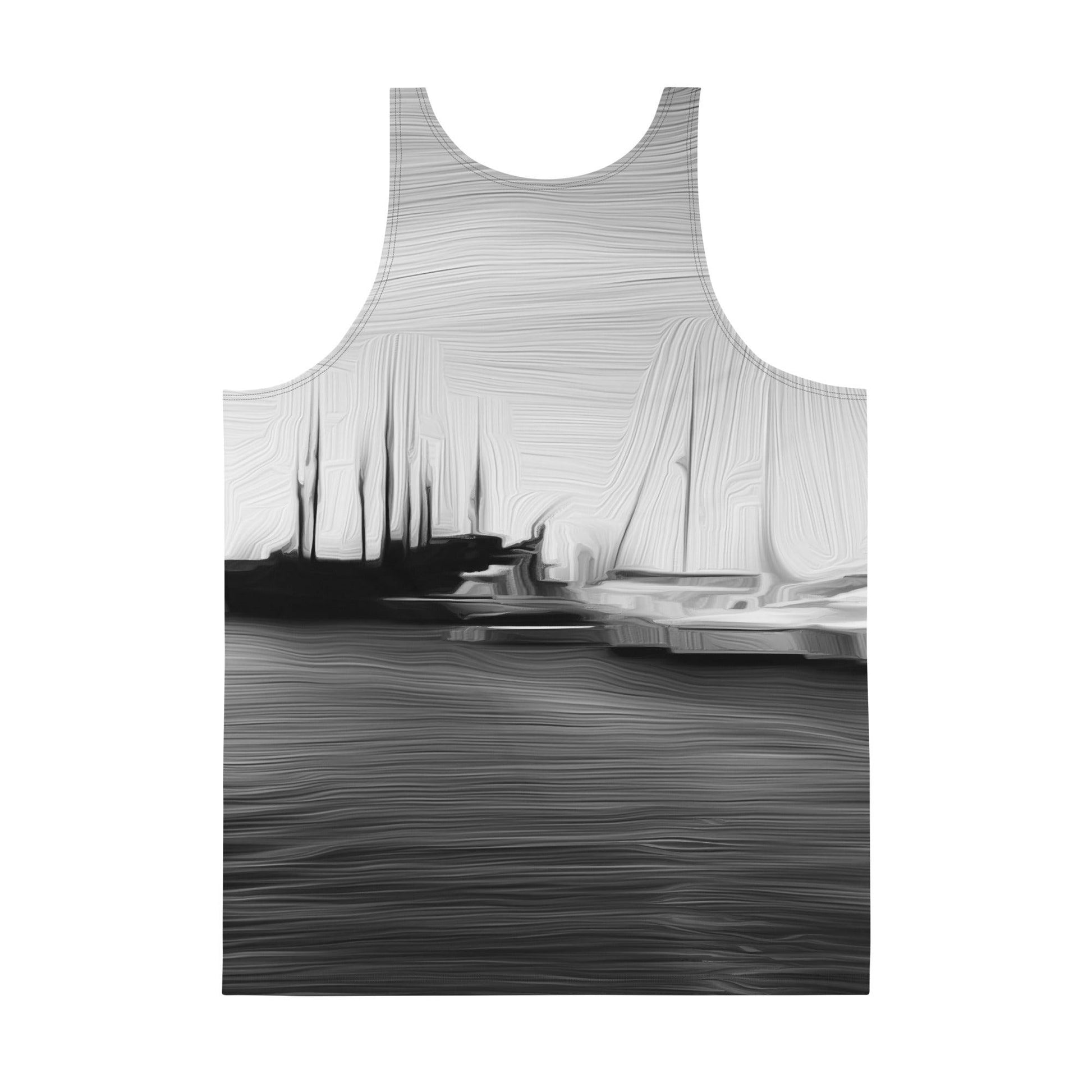 This mens tank top pays homage to the exquisite delights of the sailing world. The artistic design of sail boats in a marina setting effortlessly blends nautical charm with a contemporary look. Perfect for any water-lover, this nautical-themed tank top exudes a subtle sophistication while allowing the wearer to enjoy the refined elegance of a classic nautical look.