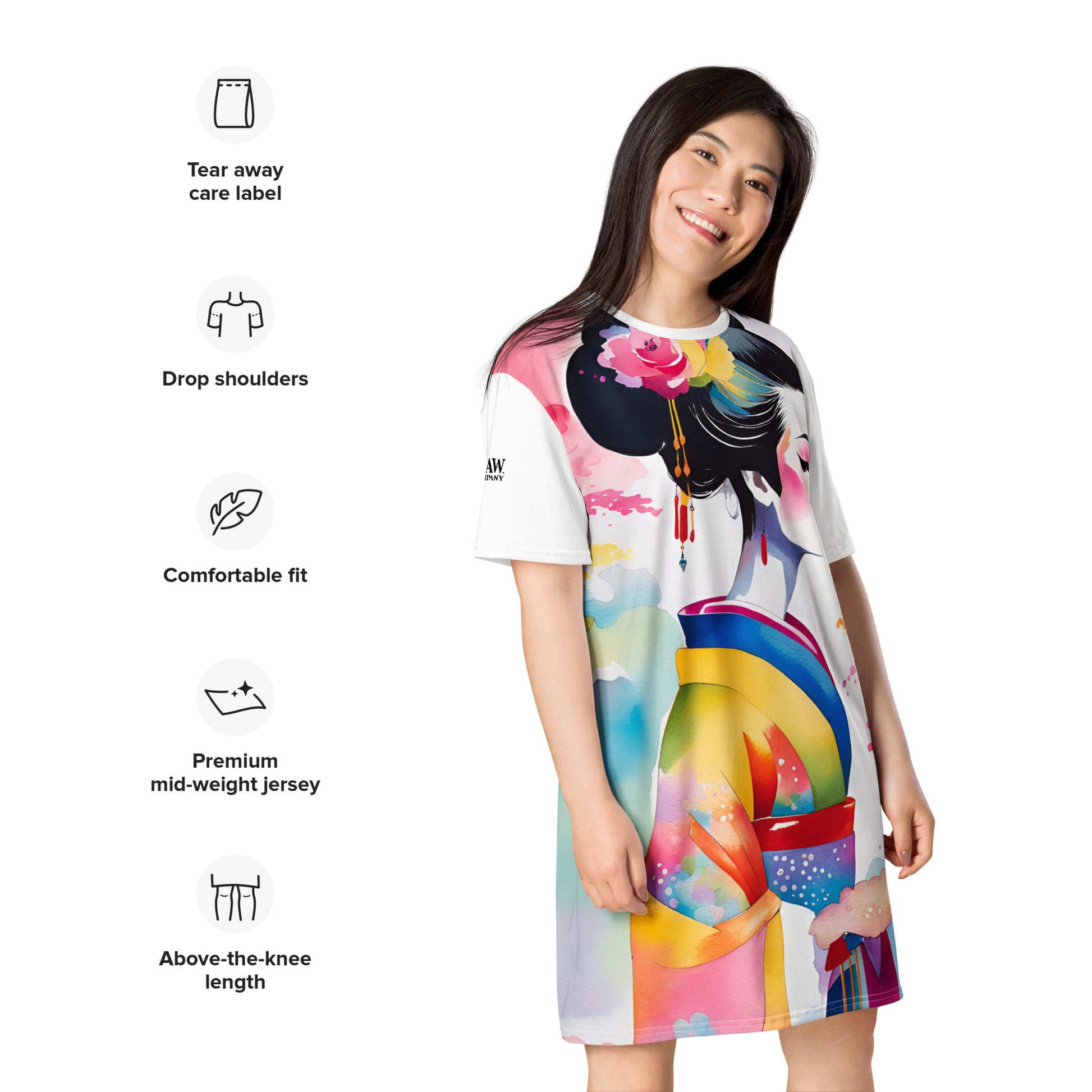 Our women’s t-shirt dress will look great on you whatever you’re doing. It’s made from a premium material that is designed to be lightweight, breathable and a comfortable fit that comes in a range of sizes to suit all body types. You can dress it up with a jacket or give it a more casual vibe with just a pair of sneakers, wear it as a nightie or even as a part of your street style outfit—the options are endless. With our unique all-over-print designs, this t-shirt dress proves that comfy can also be stylish!