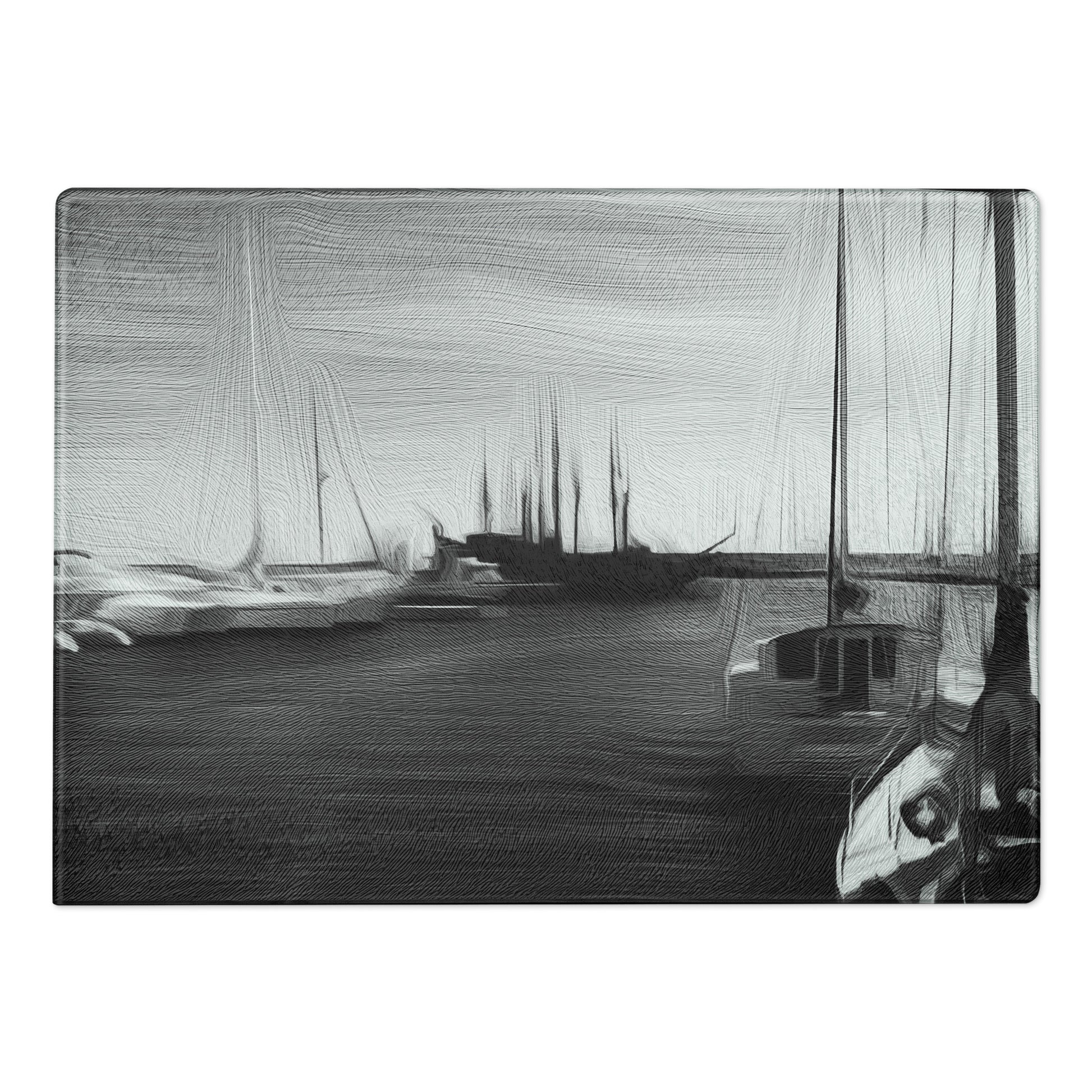 The Sleeping Yachts (at Night) - Glass Cutting Board