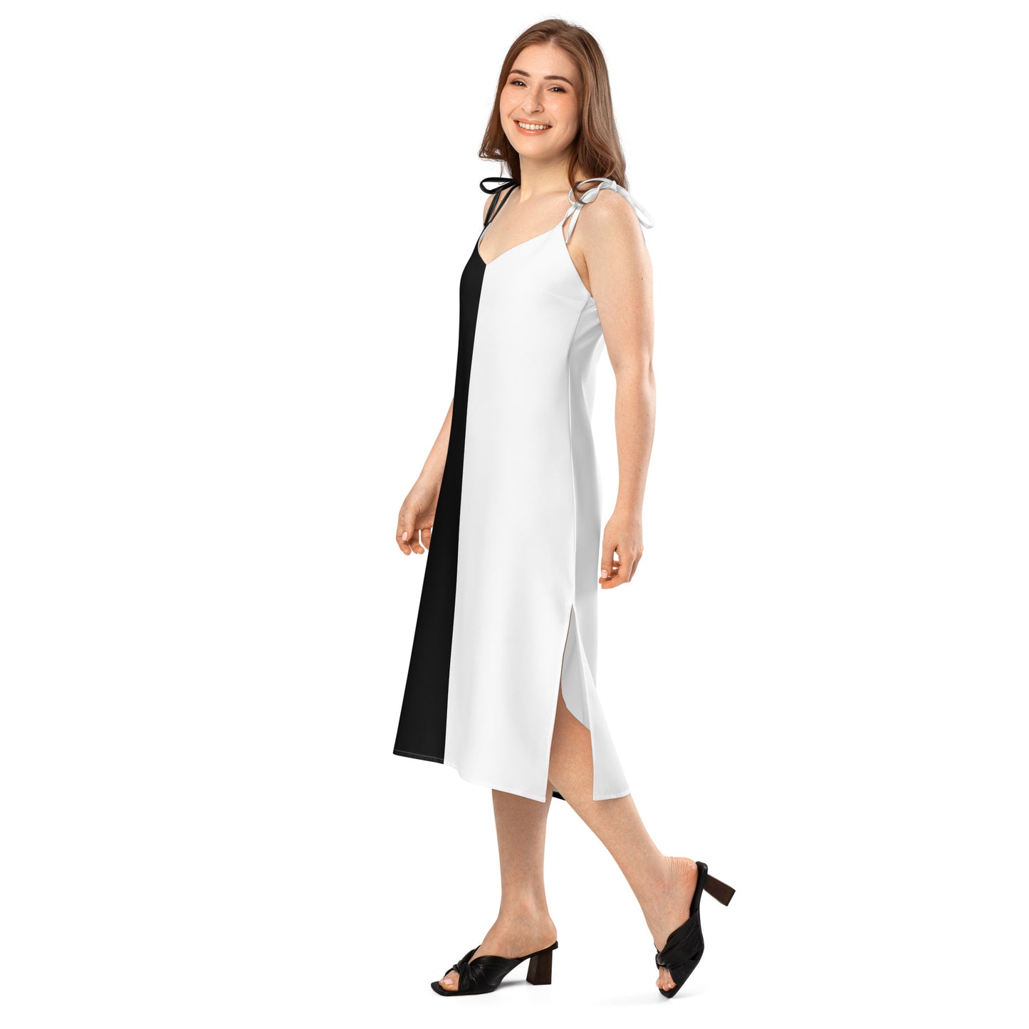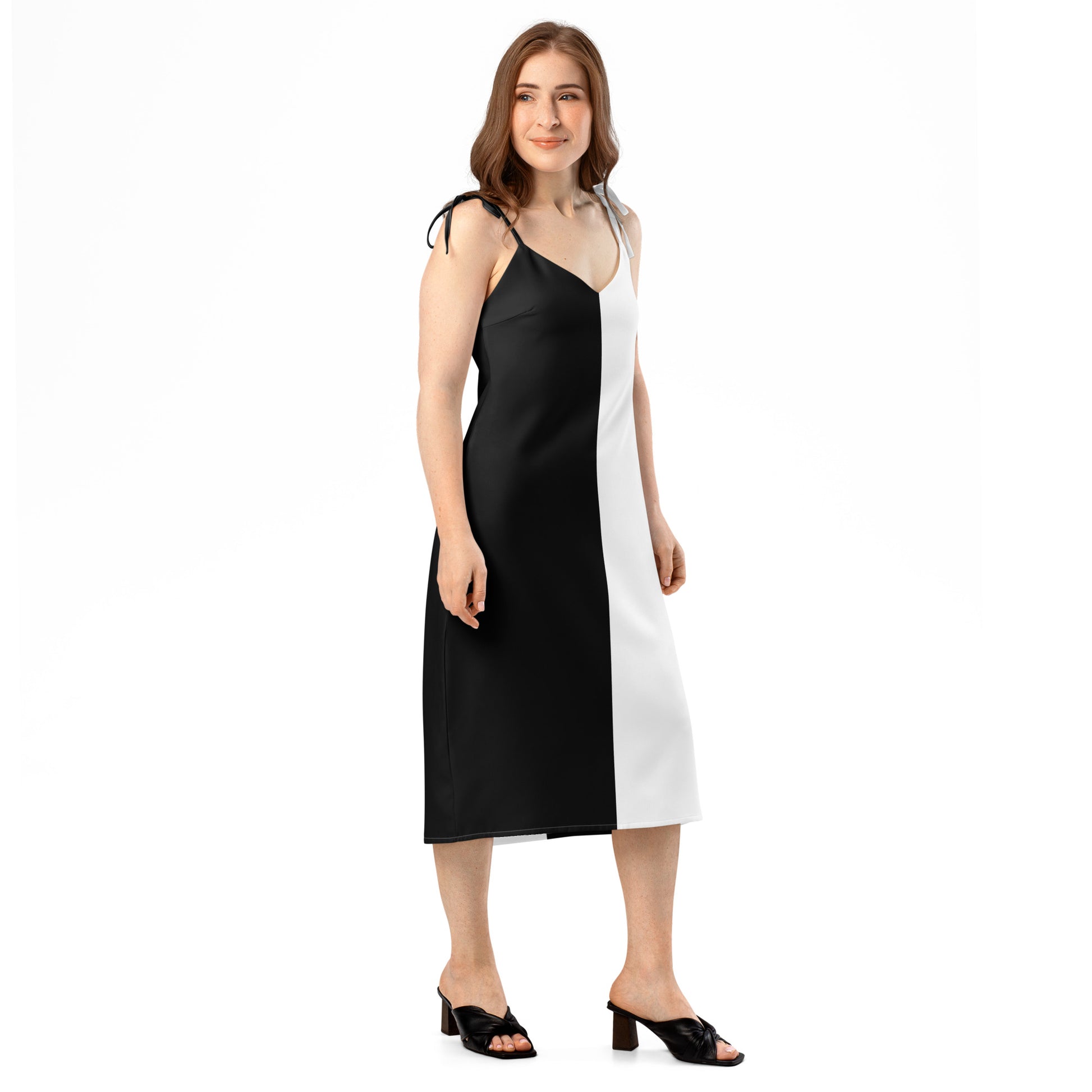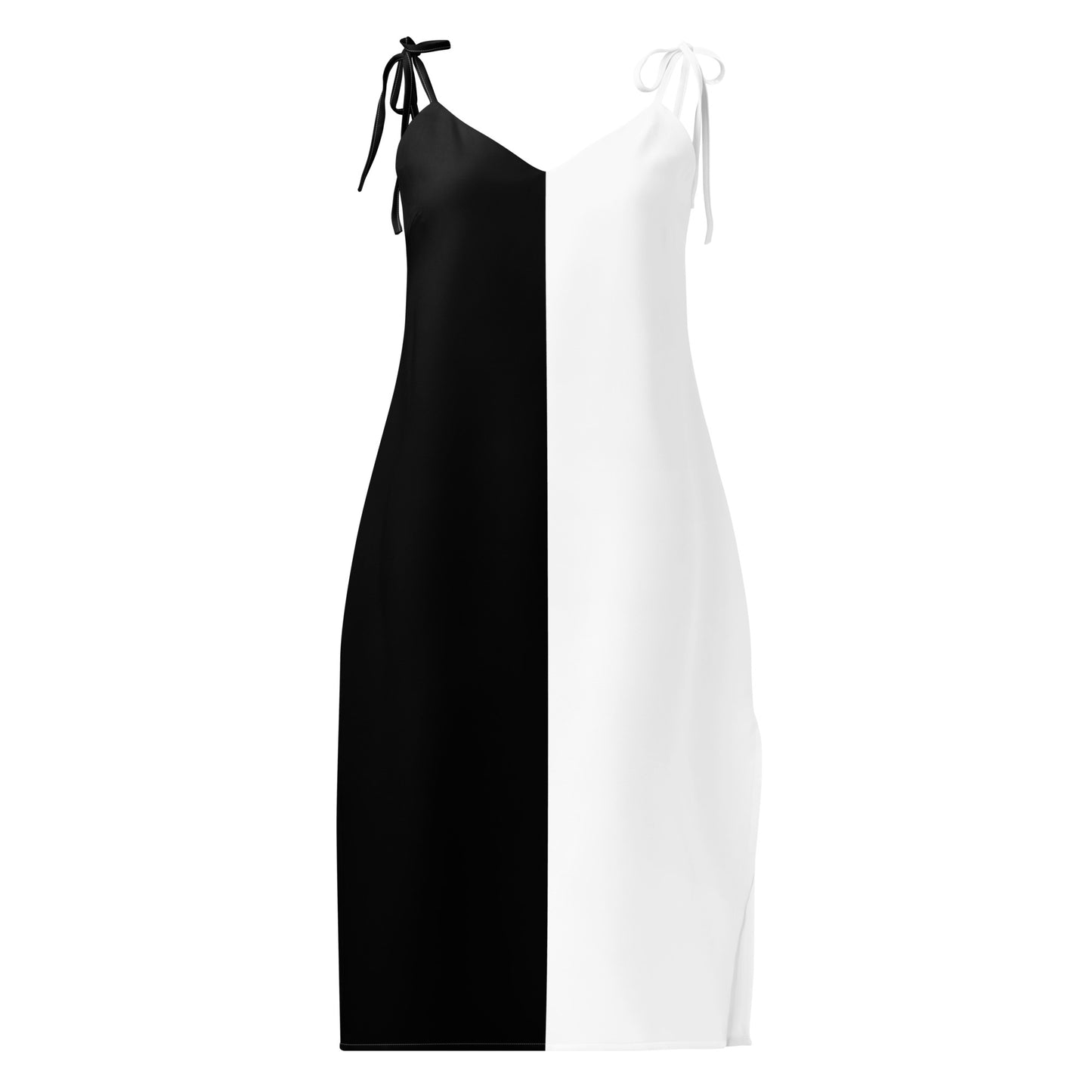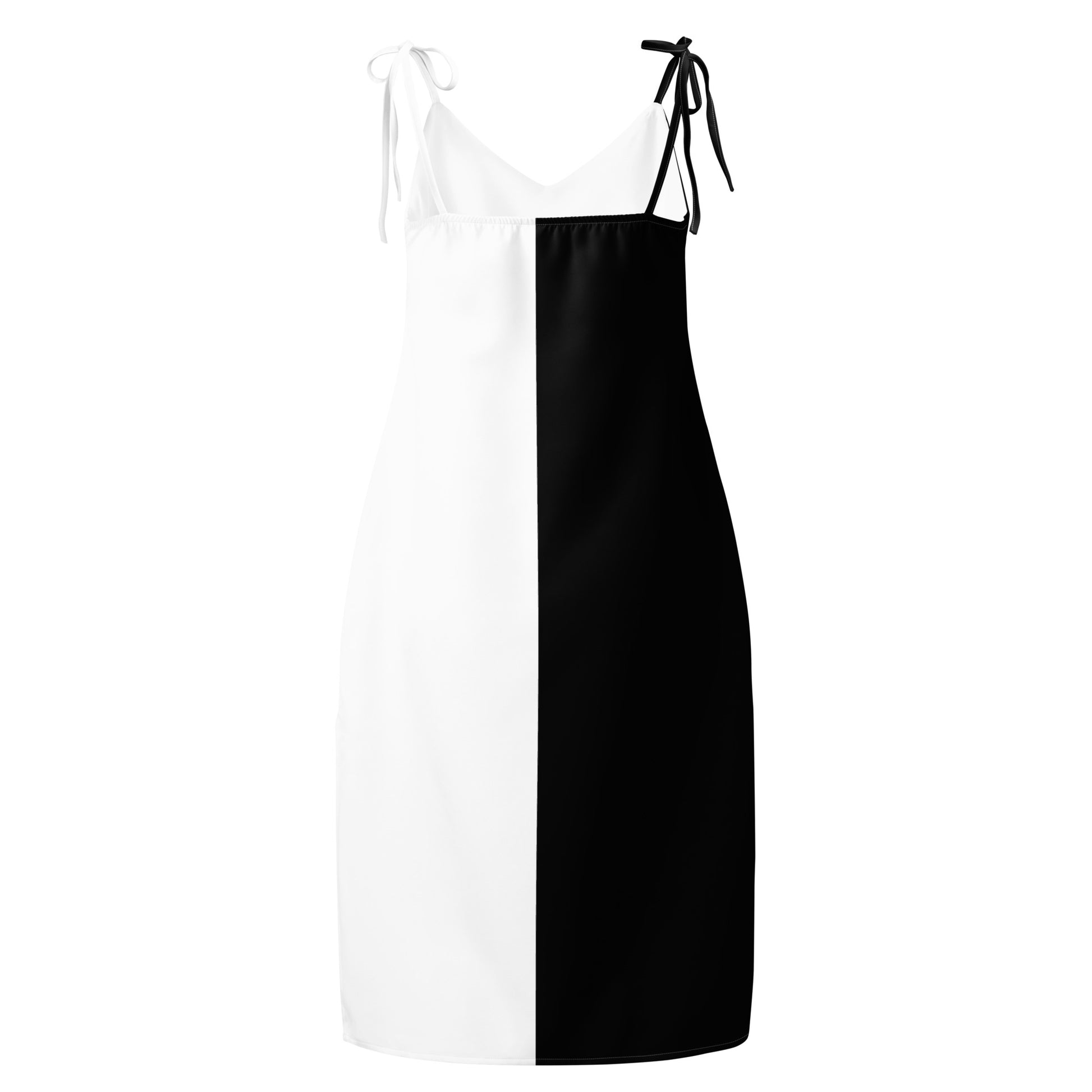 Half Black Half White - Womens Tie-Strap Chiffon Slip Dress