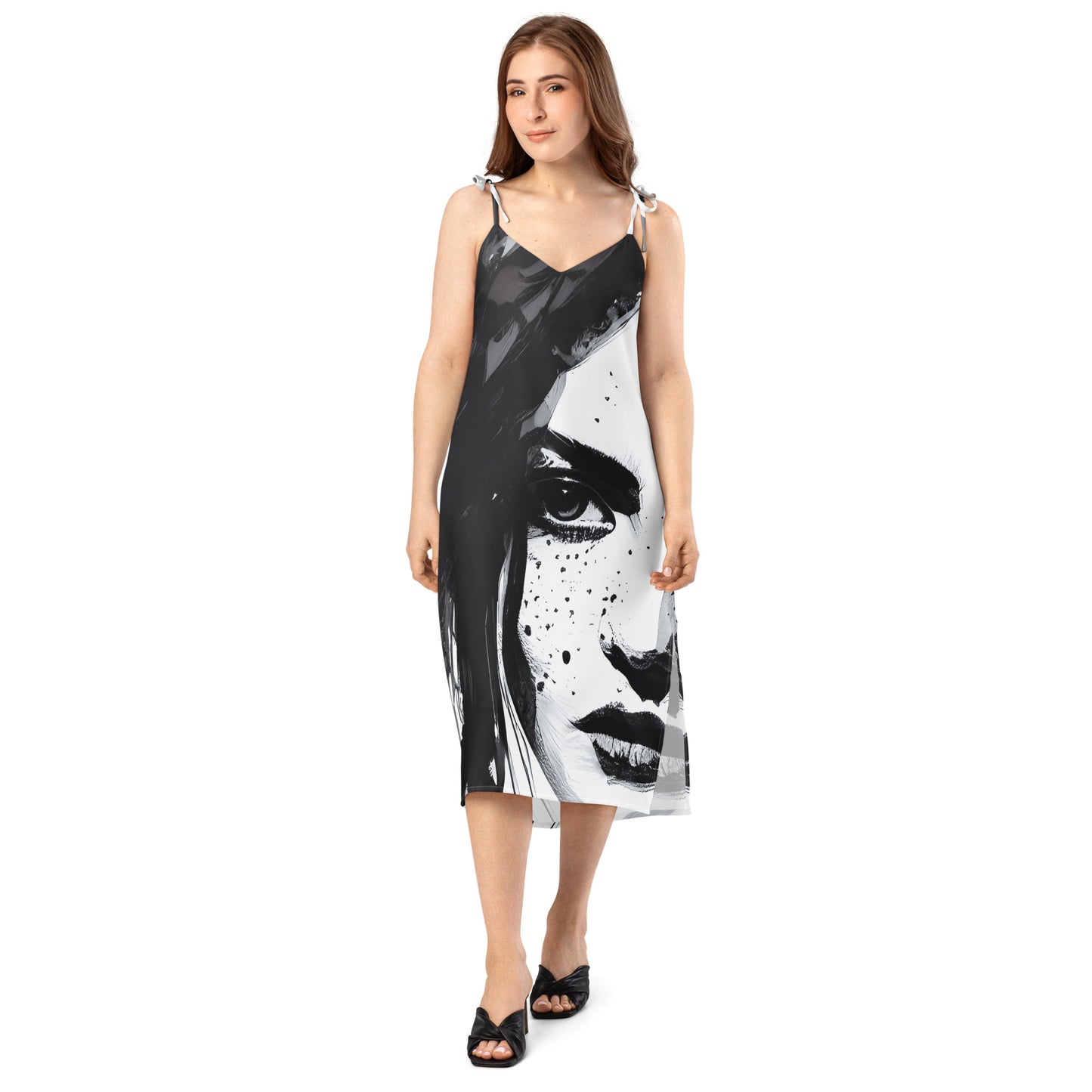 It’s easy to see the effortless style of this midi length chiffon slip dress - an easy choice for lunches, garden parties, dinner parties or that special evening occasion with it’s feminine silhouette and graceful movement. The tie-string shoulder straps and built-in bra strike a perfect balance between comfort and charm. With our unique all over print design, you’ll always look sophisticated with this fashion-forward dress.