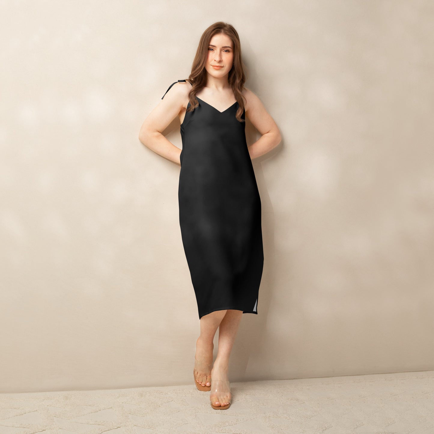 iSAW Womens Black Tie-Strap Chiffon Slip Dress