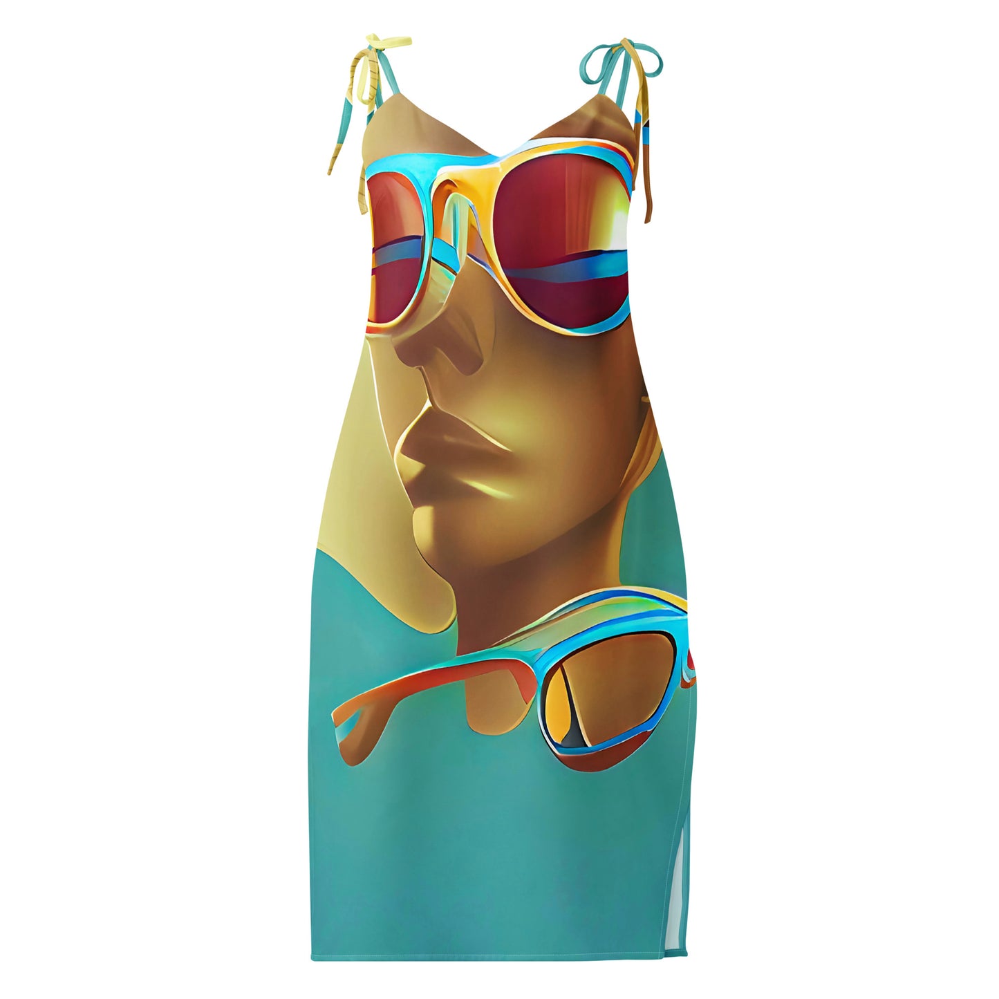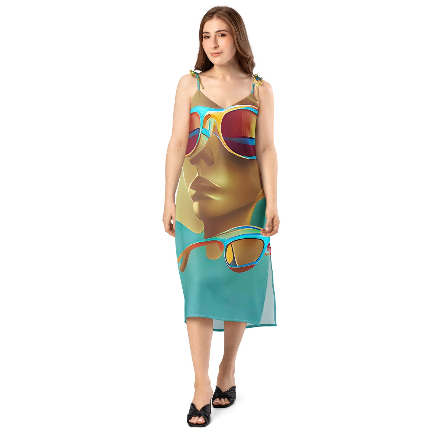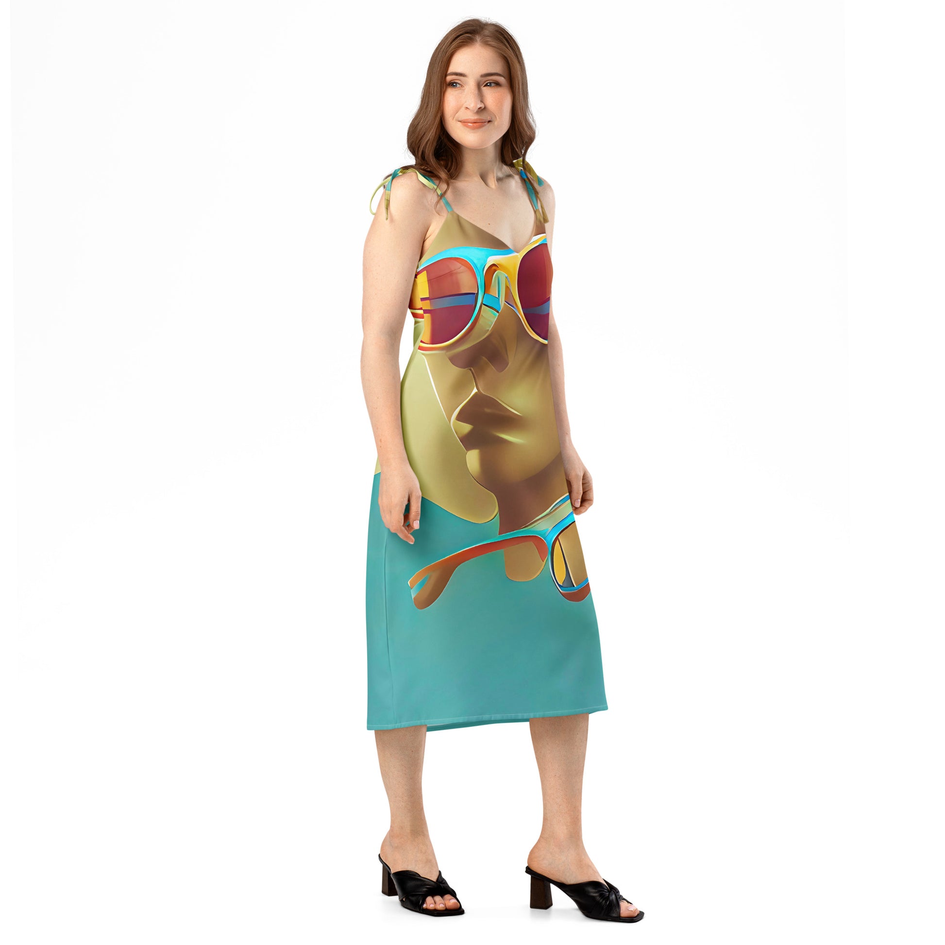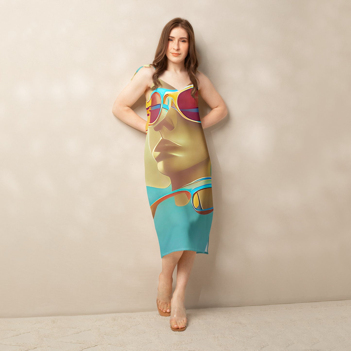 Retro Cool Blue - Womens Tie-Strap Chiffon Slip Dress