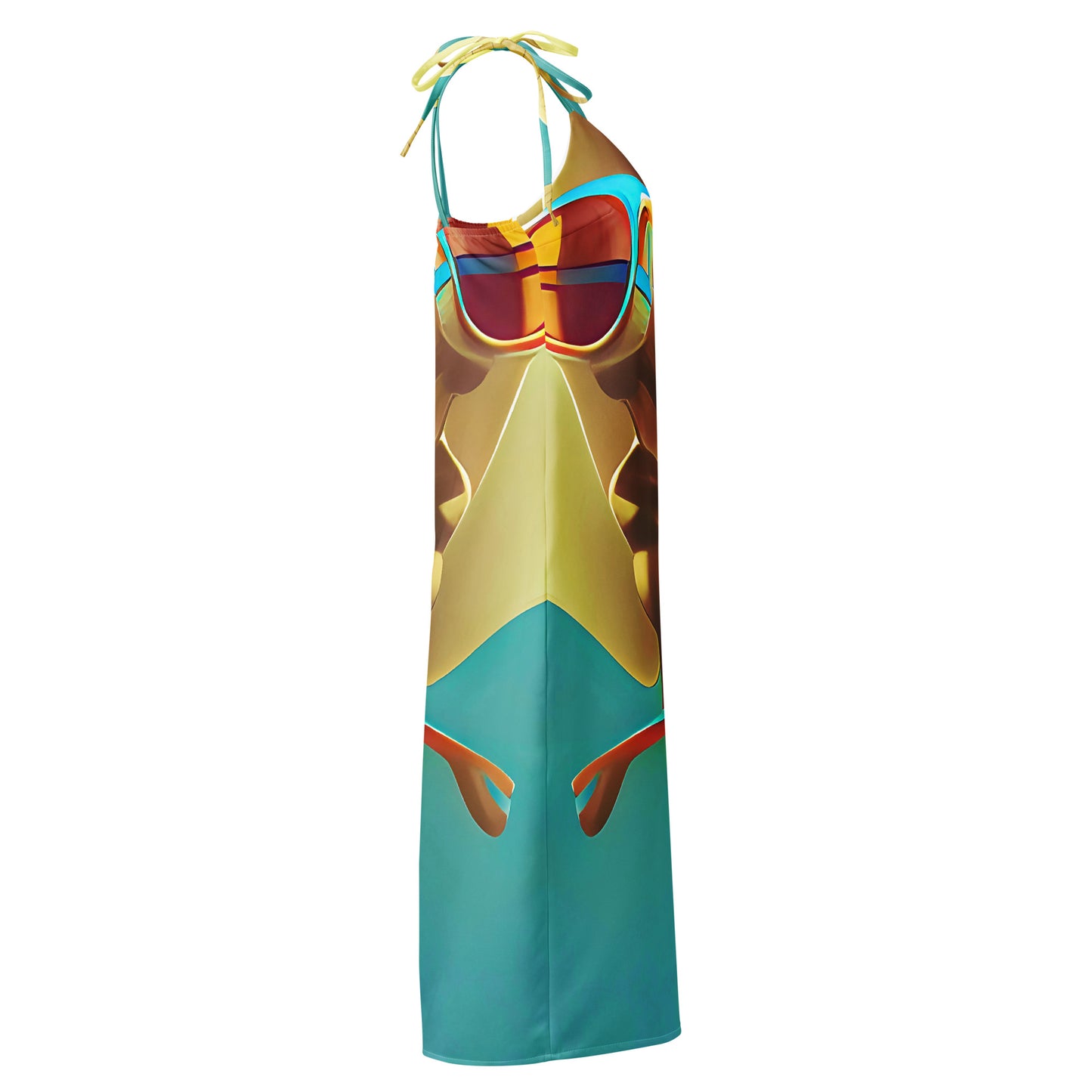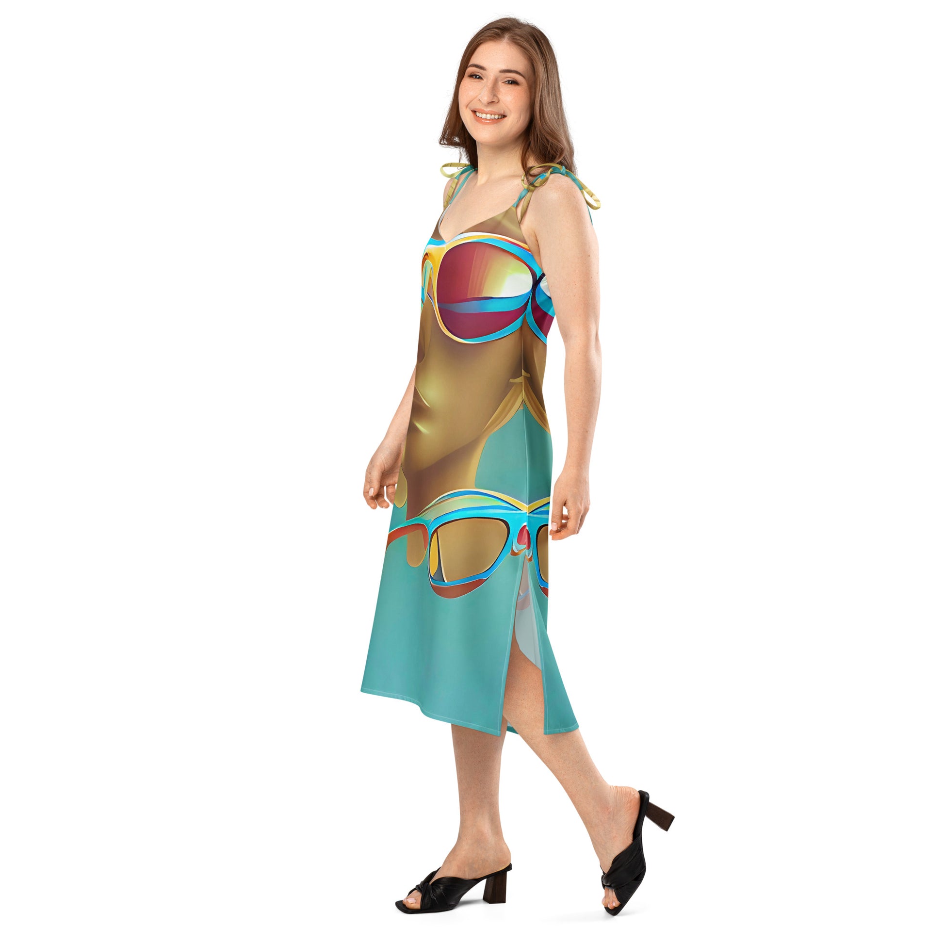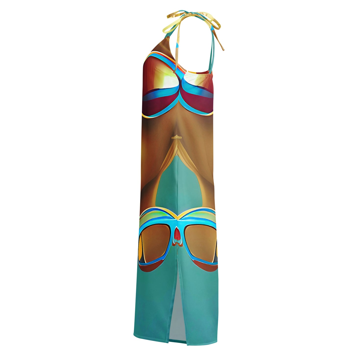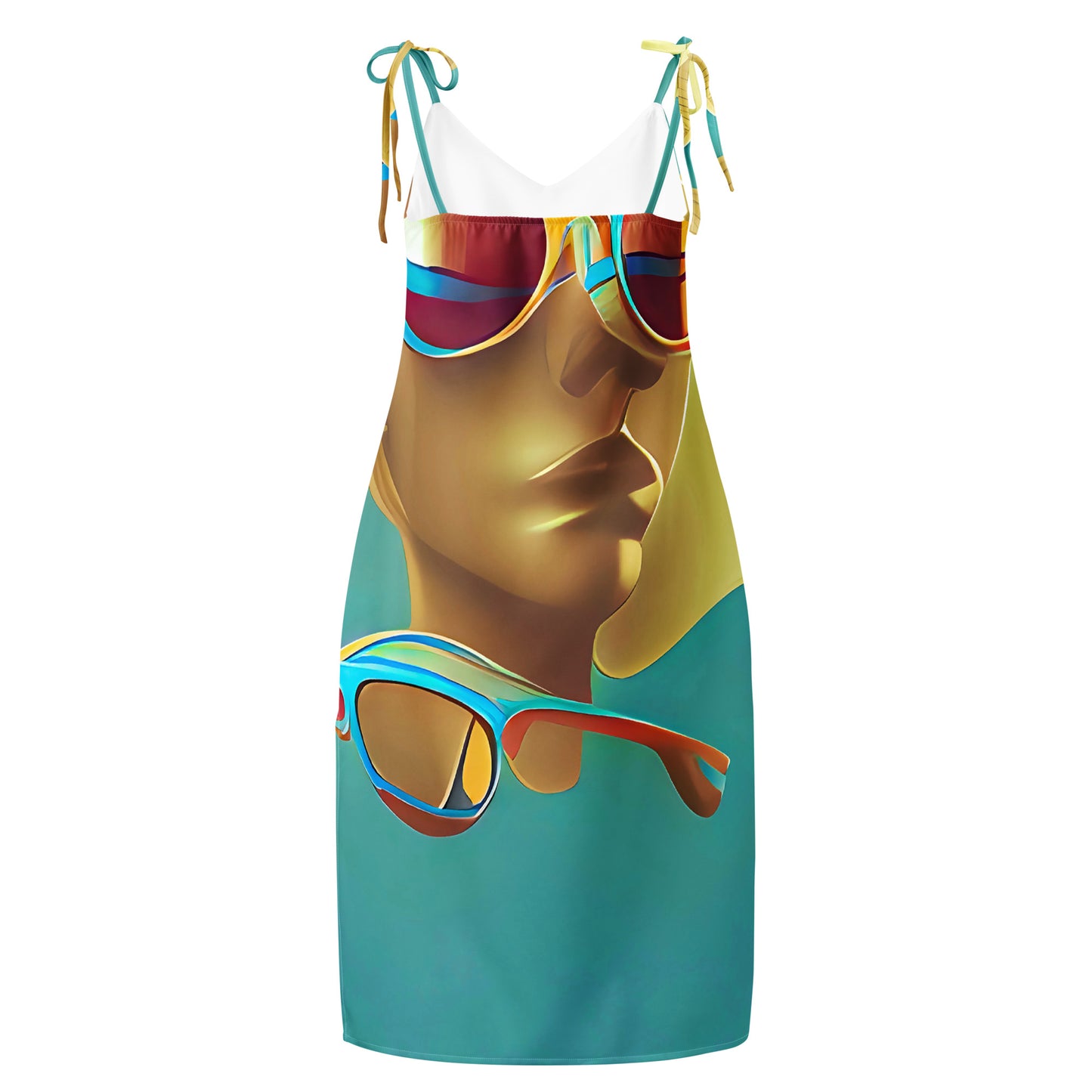 Retro Cool Blue - Womens Tie-Strap Chiffon Slip Dress