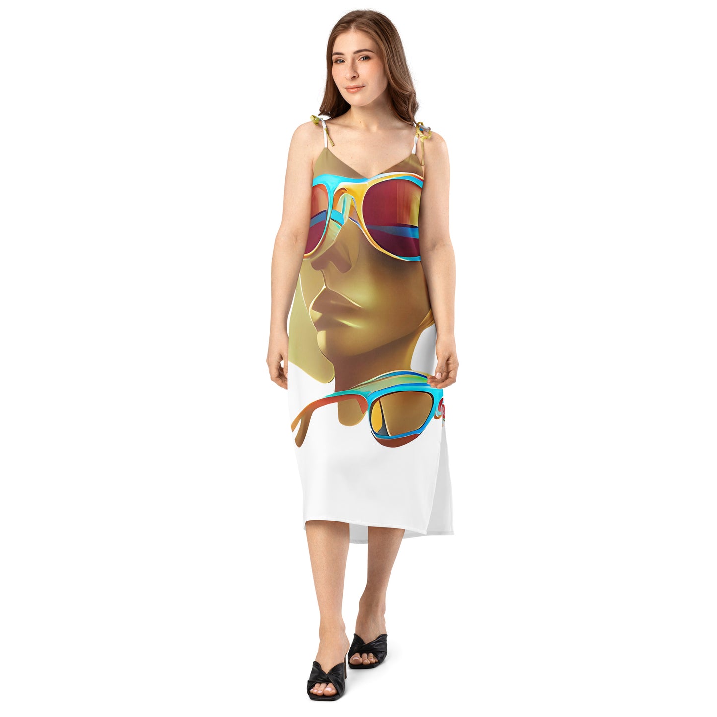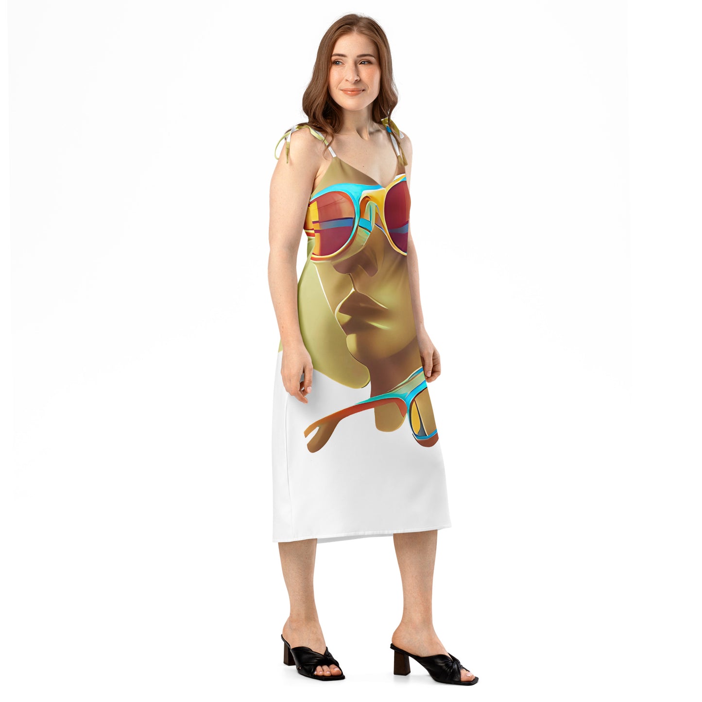 Retro Cool White - Womens Tie-Strap Chiffon Slip Dress