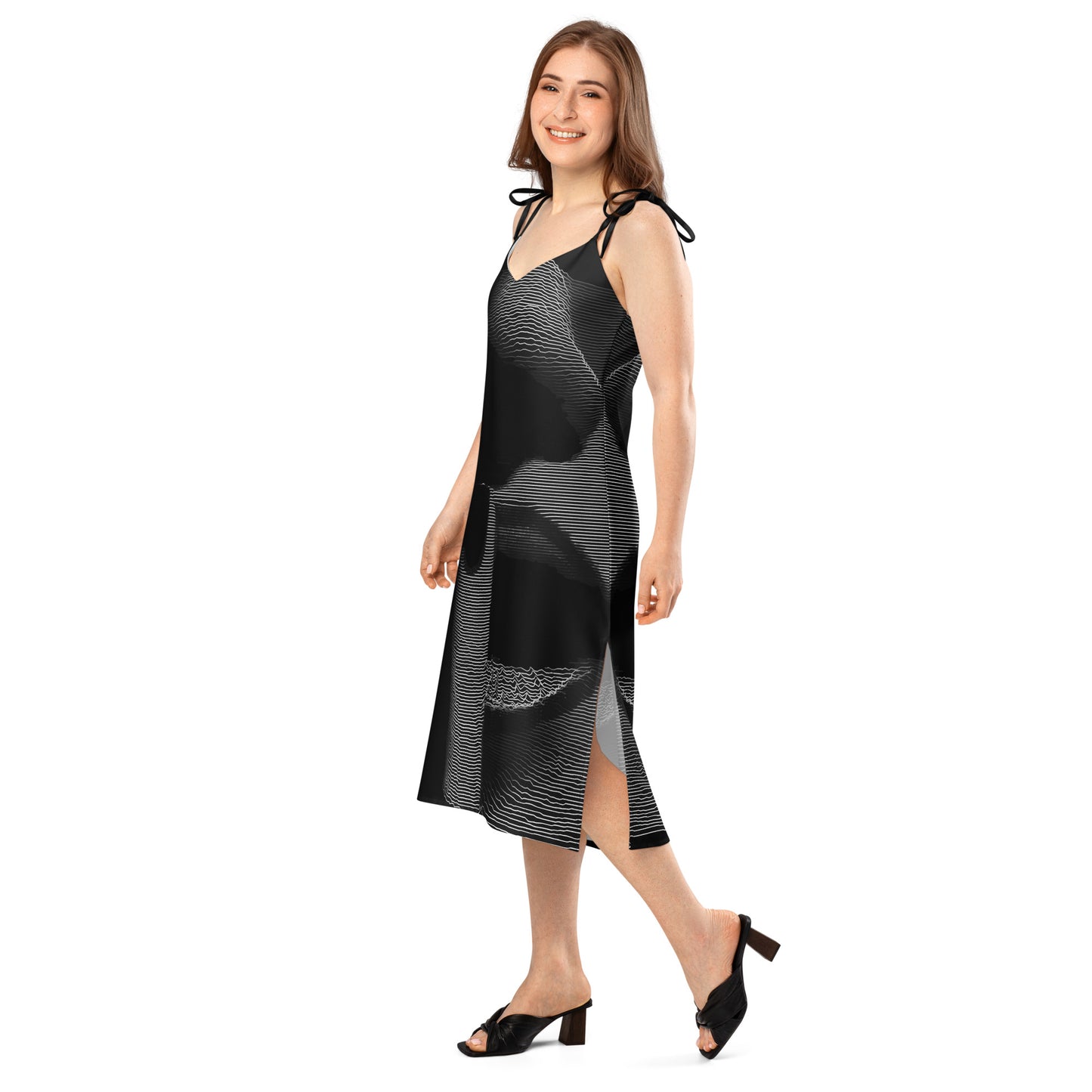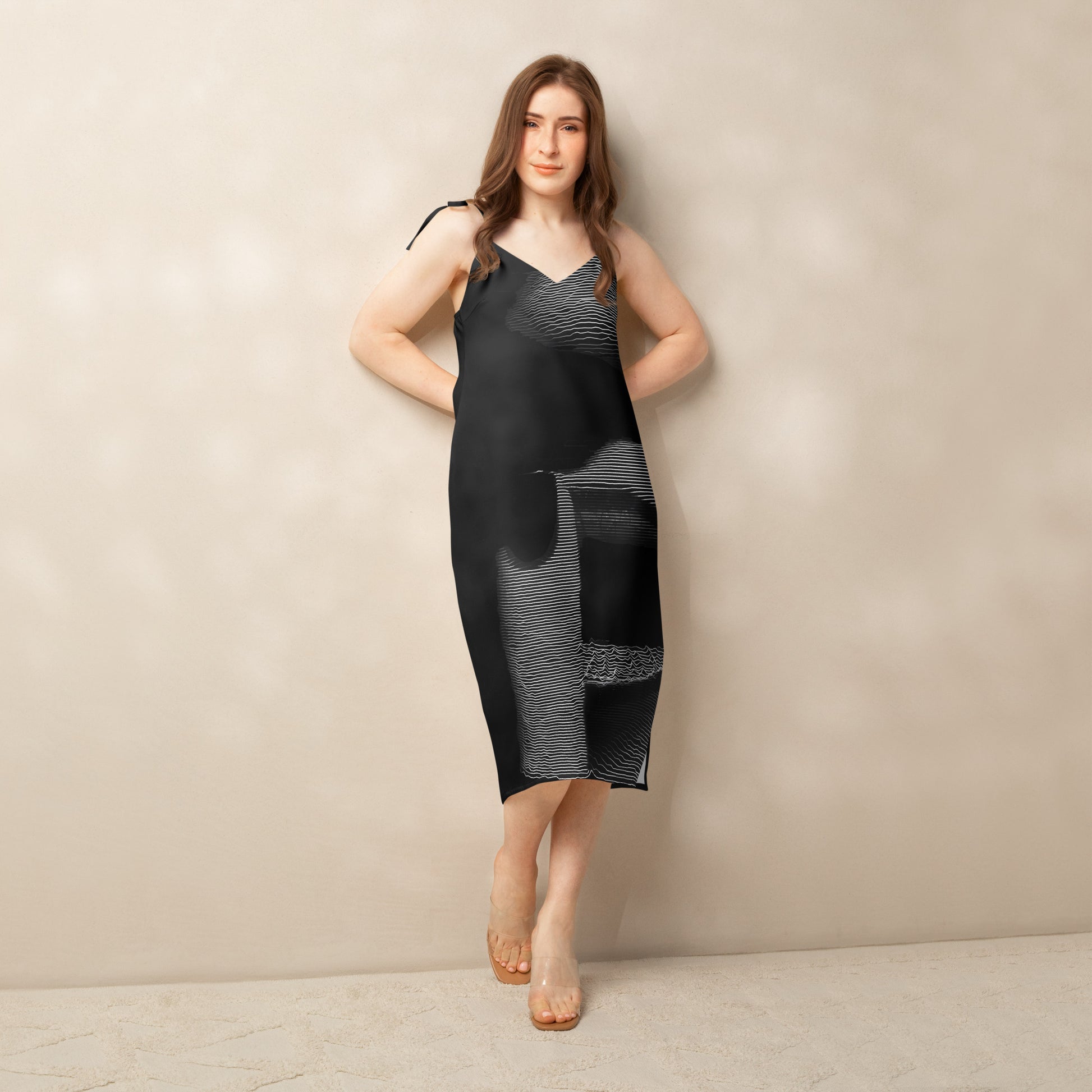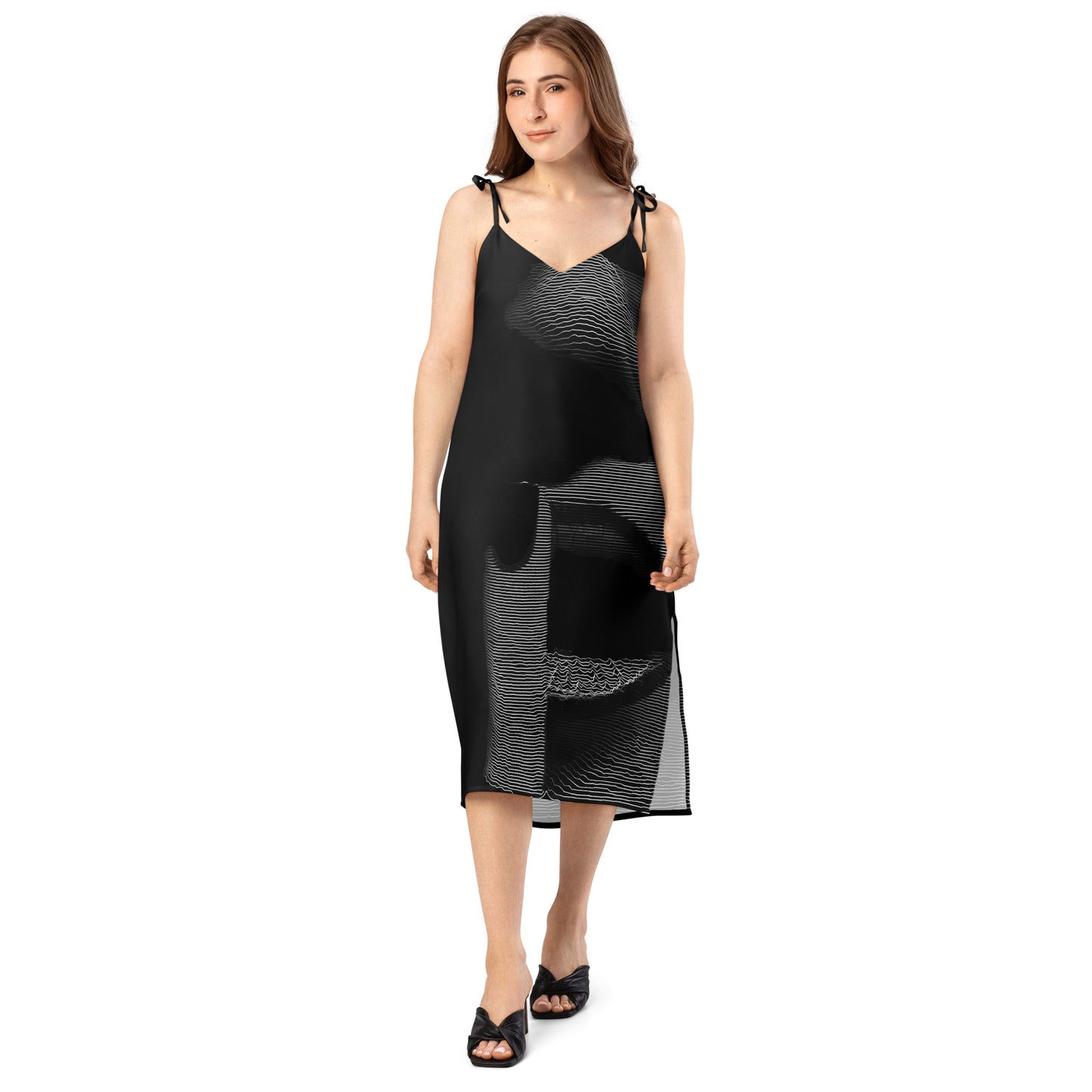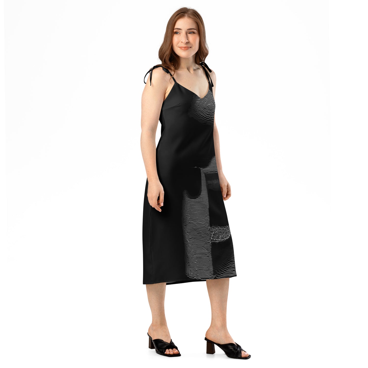 It’s easy to see the effortless style of this midi length chiffon slip dress - an easy choice for lunches, garden parties, dinner parties or that special evening occasion with it’s feminine silhouette and graceful movement. The tie-string shoulder straps and built-in bra strike a perfect balance between comfort and charm. With our unique all over print design, you’ll always look sophisticated with this fashion-forward dress.