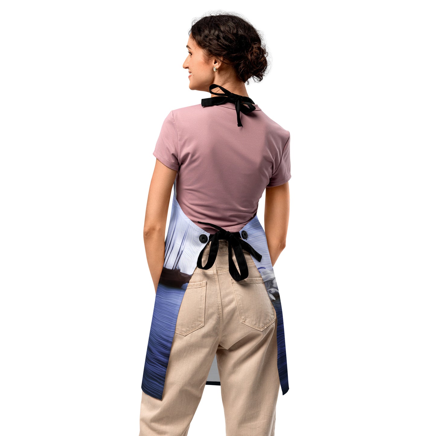 Cooking just got fashionably cooler. Our all-over-print apron is a must-have for food lovers, cooks and chefs, bakers, wine lovers, grill masters and masters of fine dining. It features button-adjustable straps and a durable fabric that can withstands spills. With this one-size-fits-all apron, it’s makes a stylish fashion statement when you’re cooking, grilling, baking, or just chilling!