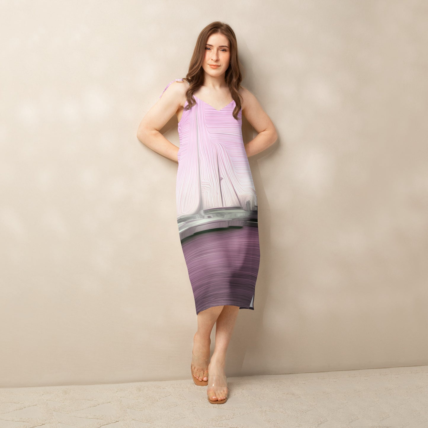 It’s easy to see the effortless style of this midi length chiffon slip dress - an easy choice for lunches, garden parties, dinner parties or that special evening occasion with it’s feminine silhouette and graceful movement. The tie-string shoulder straps and built-in bra strike a perfect balance between comfort and charm. With our unique all over print design, you’ll always look sophisticated with this fashion-forward dress.