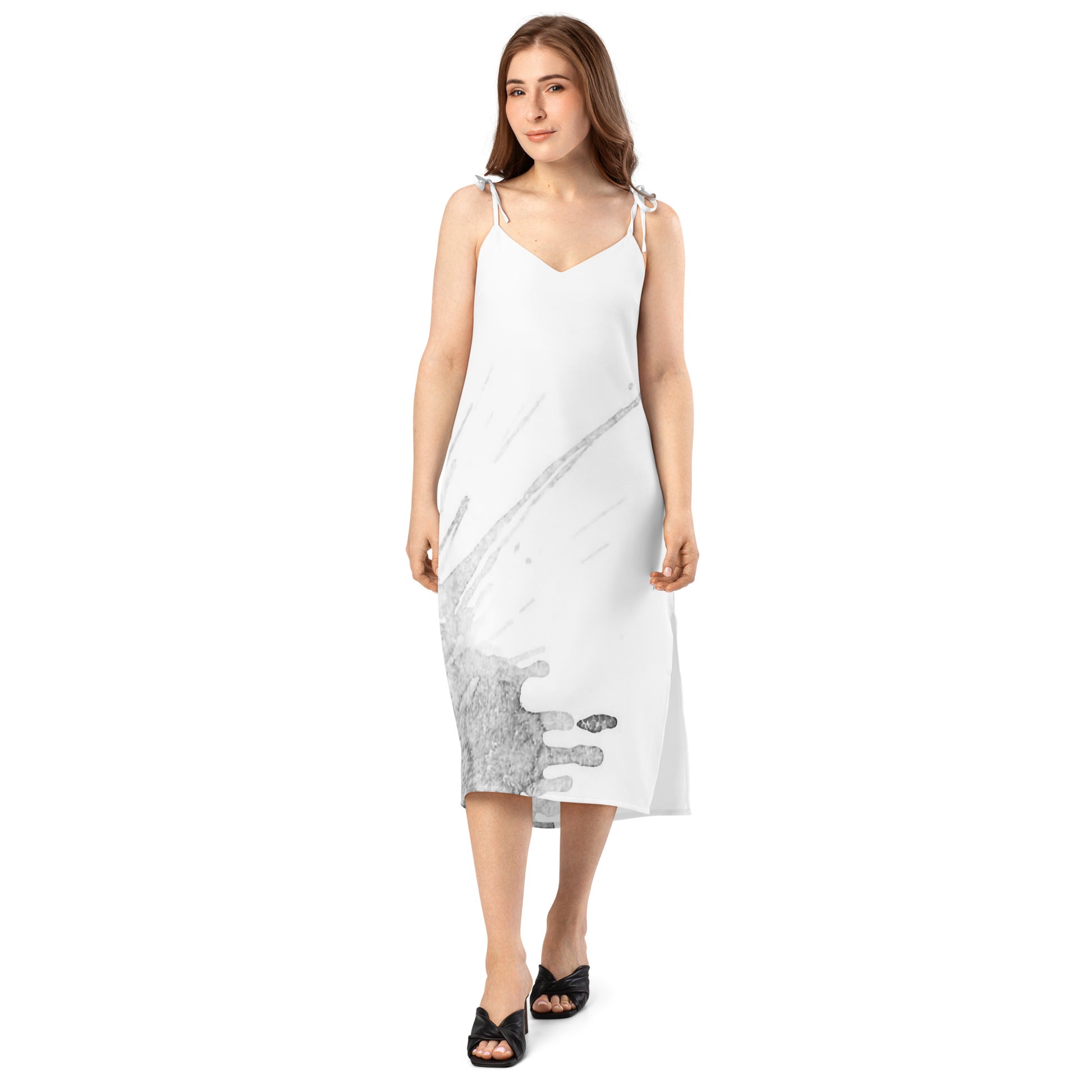 Watercolour Grey Splash - Womens Tie-Strap Chiffon Slip Dress